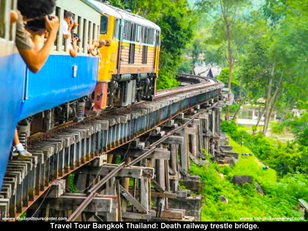 Bridge on the River Kwai and Thailand-Burma Railway Tour Kanchanaburi’s famous Bridge on the River Kwai is a poignant reminder of the thousands of POW’s and forced labourers who lost their lives in the Second World War. This full day guided tour from Bangkok includes touching visits to a small war museum and a POW cemetery. The day will also consist of an exhilarating long-tailed speedboat ride, a walk across the Bridge and a ride along the tracks of the Death Railway on a local train.
